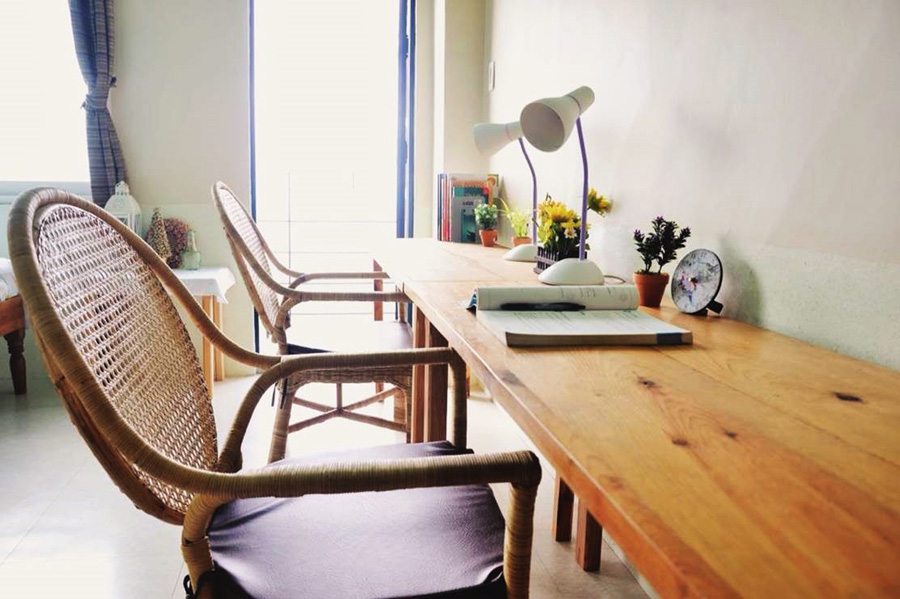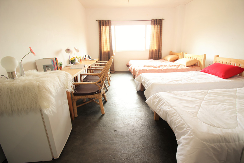 シングルベッド、机、椅子、冷蔵庫、ソファー、トイレ、シャワー(1/2/3人部屋にはテラス有) | ||