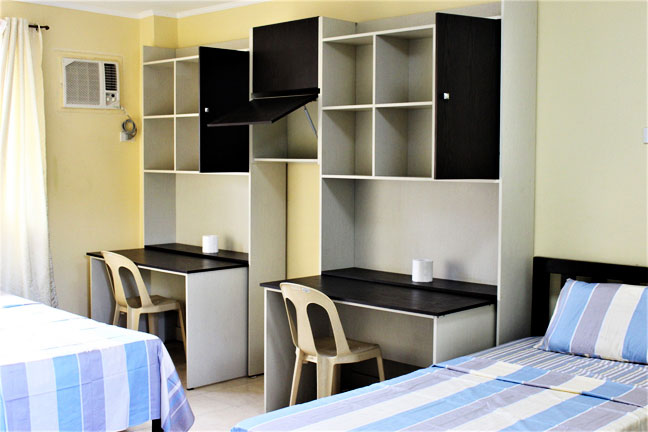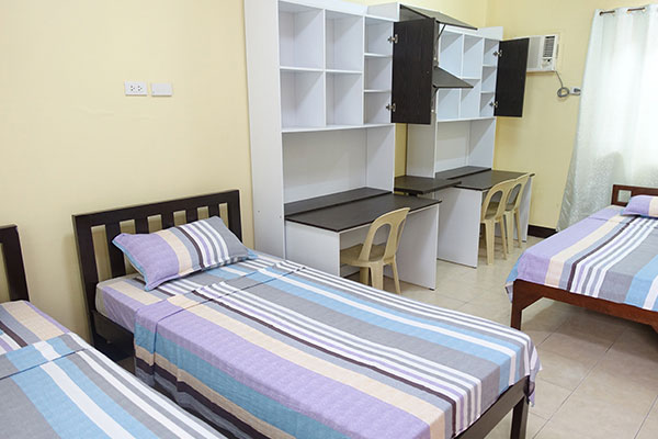 | その他の学校設備 | 学生ルーム、Wi-Fi、学生寮、自習室兼図書室、会議室、食堂、学生ラウンジ、マッサージ室、バトミントン、卓球台 ※ジムは外部との提携あり。平日夜または週末フィリピン人とのバスケットも可能。 |