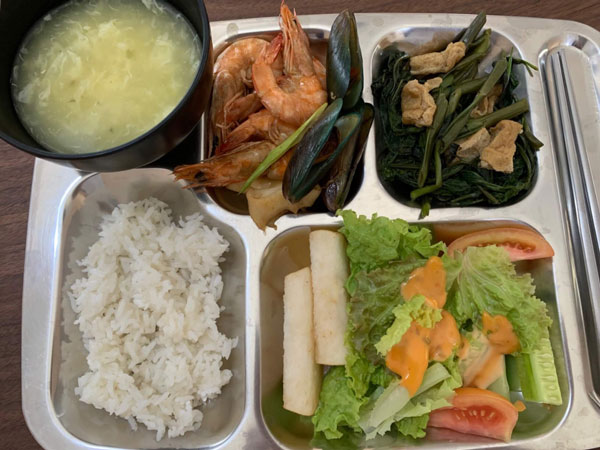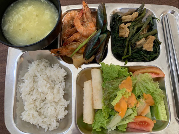 日本人がメニューの考案をしており、飽きないように韓国、フィリピン、洋食、もちろん日本食など様々な種類の料理を用意しています。